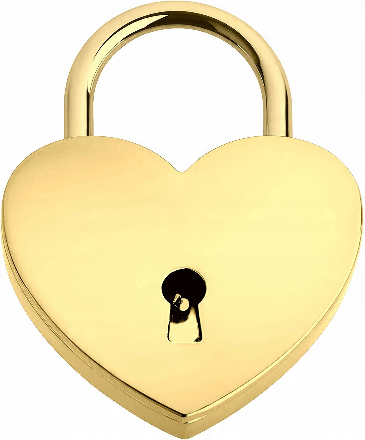 - Kłódka wykonana w kolorze błyszczącego złota.