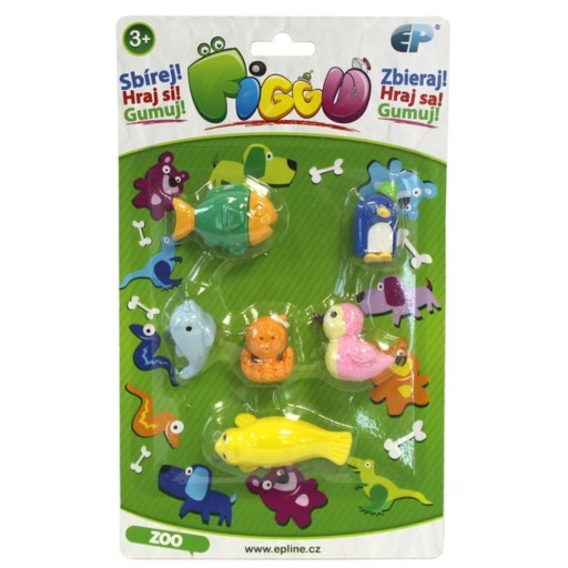 Фіггу, блістер із практичними гумками кумедних форм і кольорів.