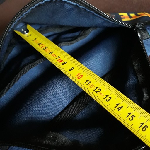 Одна кишеня, застібається на блискавку. Обхват талії, за моїми підрахунками, максимум 50 см.
