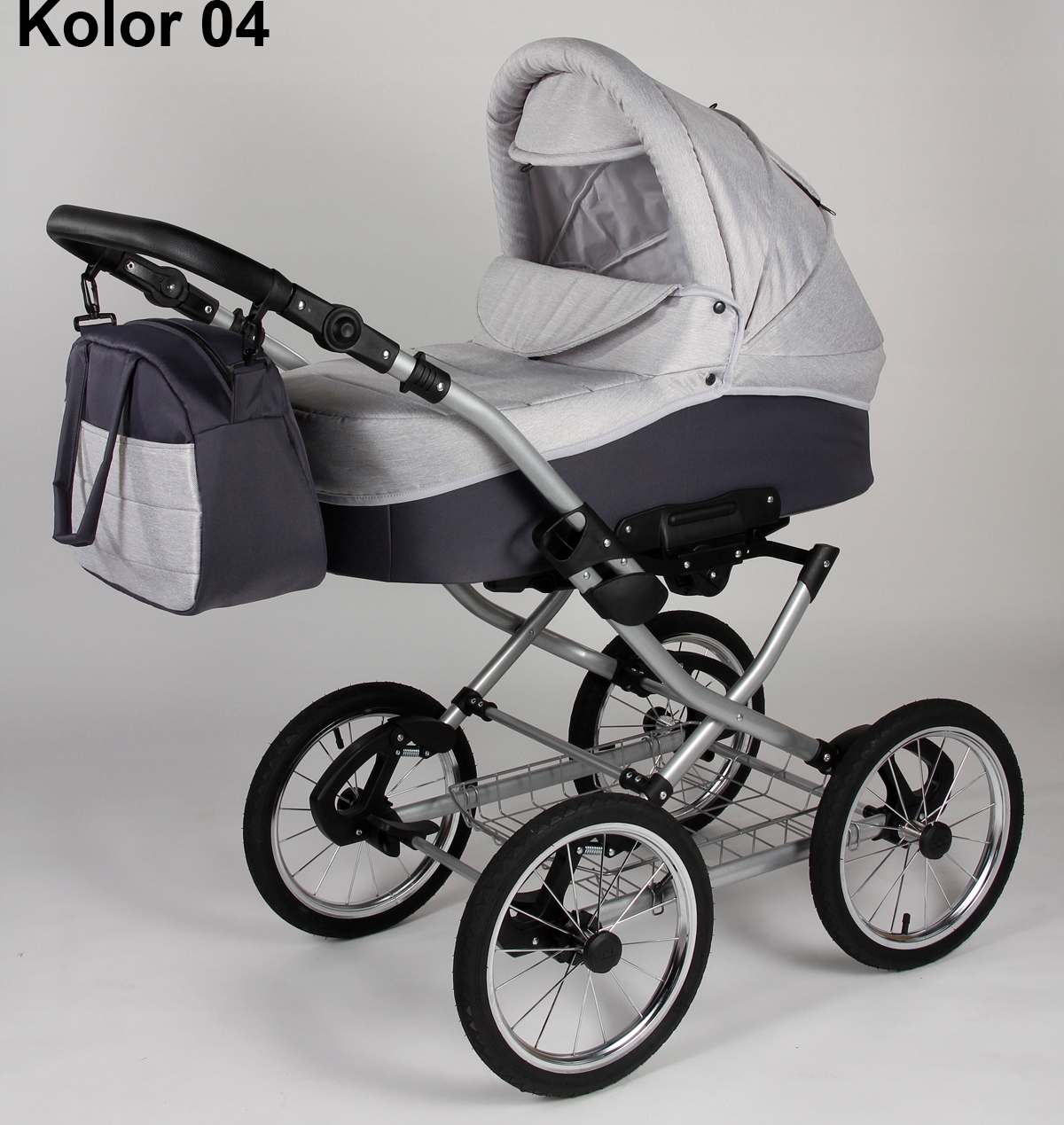 Przedmiotem sprzedaży jest lekki i funkcjonalny wózek gondolowy z możliwością wpięcia fotelika samochodowego w stelaż wózka. Wózek ten charakteryzuje się połączeniem tradycji i nowoczesności oraz doskonałą jakością. Obszerna i przytulna gondola z regulacją oparcia i miękkie zawieszenie zapewniają dziecku komfort podczas spacerów. Produkowany jest z najwyższej jakości tkanin, które zapewniają Państwa Dziecku idealną temperaturę i wilgotność powietrza niezależnie od warunków pogodowych. Duże pompowane koła 14" dają mu ekskluzywnego uroku. Wózek posiada wymagane certyfikaty bezpieczeństwa i higieny potwierdzające zgodność z niezwykle rygorystyczną normą.Został wyprodukowany w Polsce zgodnie z europejską normą bezpieczeństwa EN 1888:2004