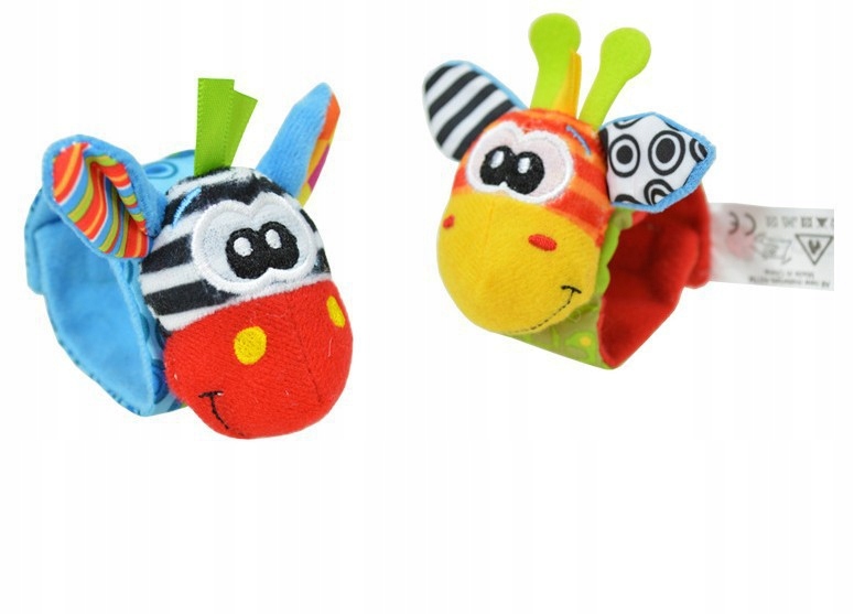- Kolorowe, wzorzyste i szeleszczące skarpetki oraz opaski z grzechotką to idealne zabawki dla najmłodszych pociech. Przyciągają uwagę dzieci, dzięki czemu chętnie sięgają swoich stópek i bawią się rączkami.