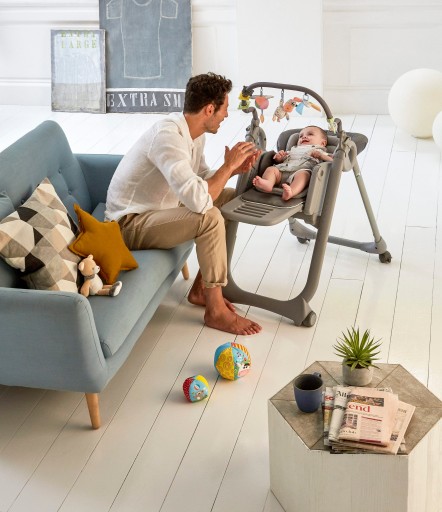 Polly Magic Relax itбагатофункціональне кріслоякий, залежно від етапу розвитку дитини - від народження до 3 років, виконує різні функції: спочатку як викидач, з 6 місяців як стільчик для годування, а після 1 року - як стільчик. стільчик, завдяки якому дитина може сісти з сім'єю, щоб разом поїсти за столом.
