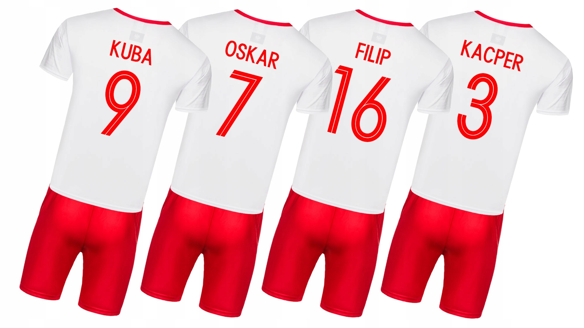 Костюм футбол ПОЛЬША + гетры СОБСТВЕННЫЙ ОТПЕЧАТОК - 134