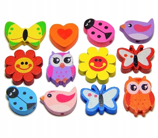 Koraliki MIX RODZAJÓW - 4 sztuki (np. miś, kwiatuszek, sowa, biedronka, motylek)