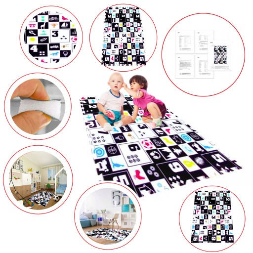 ПІСЛЯ ЗАВЕРШЕННЯ ВЕСЬ Килимок має краї навколо (його можна використовувати як килим), і складається з 6 великих, кольорових, двосторонніх пазлів без запаху, кожен пазл має розміри 60 см x 60 см!