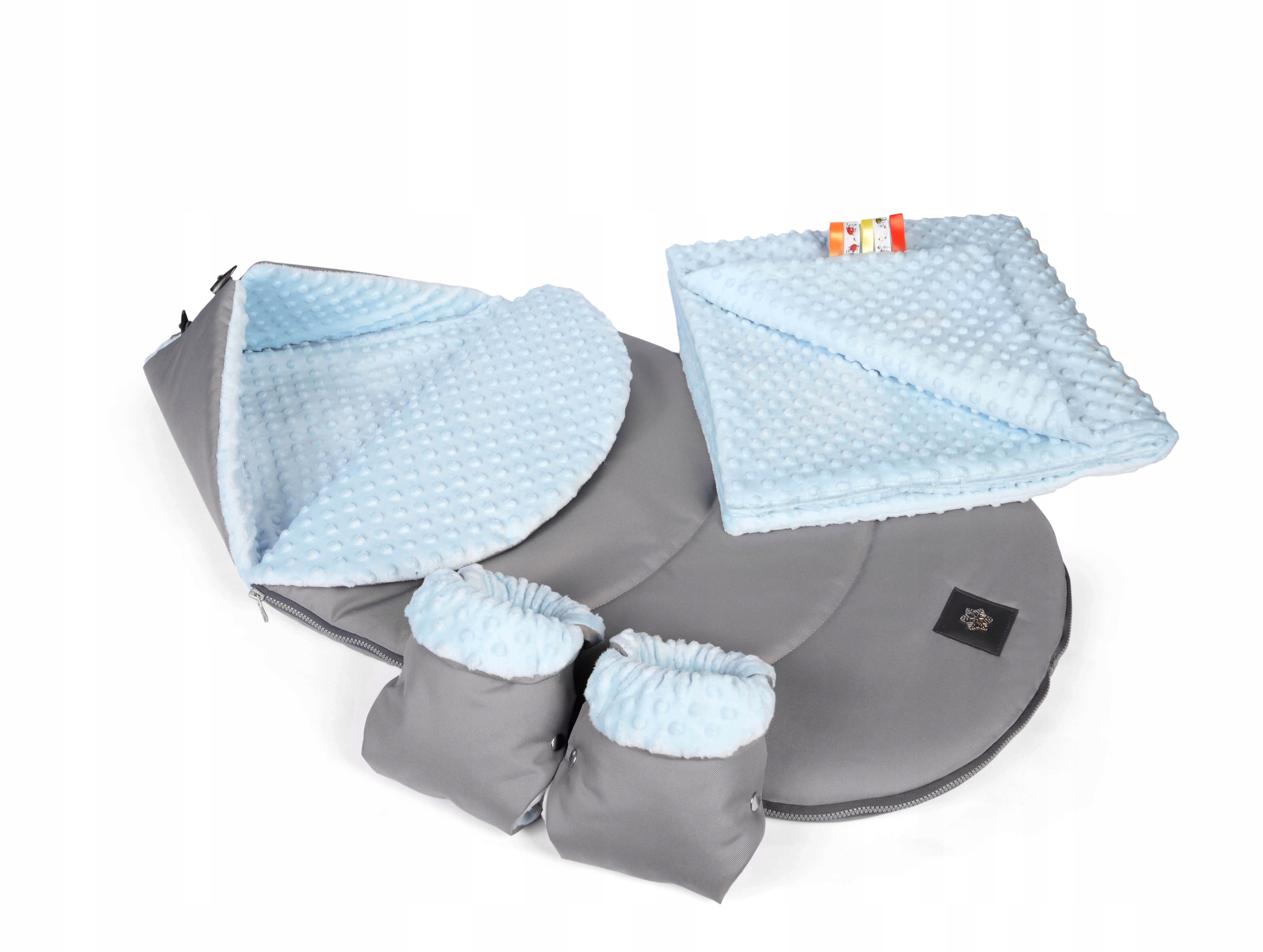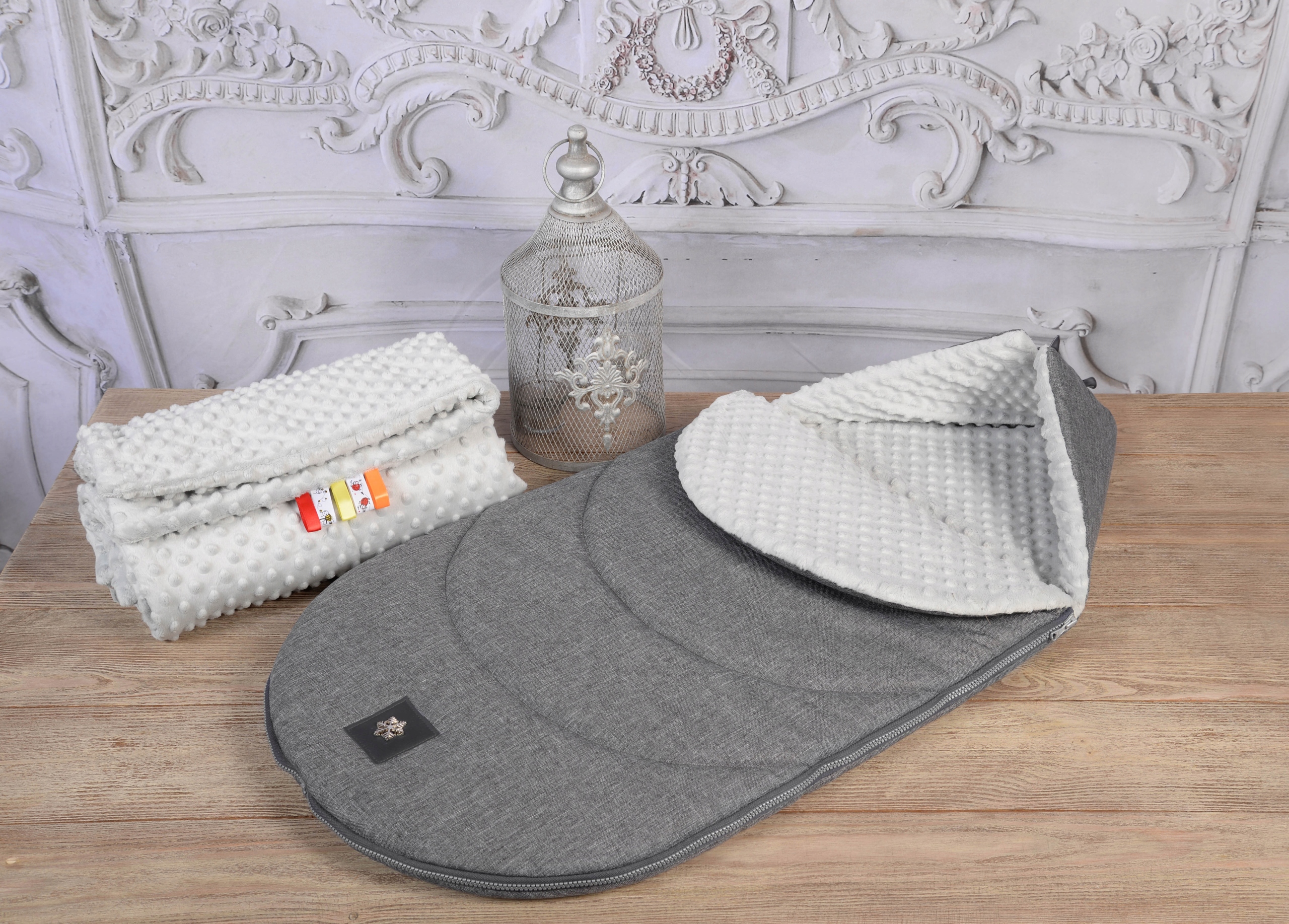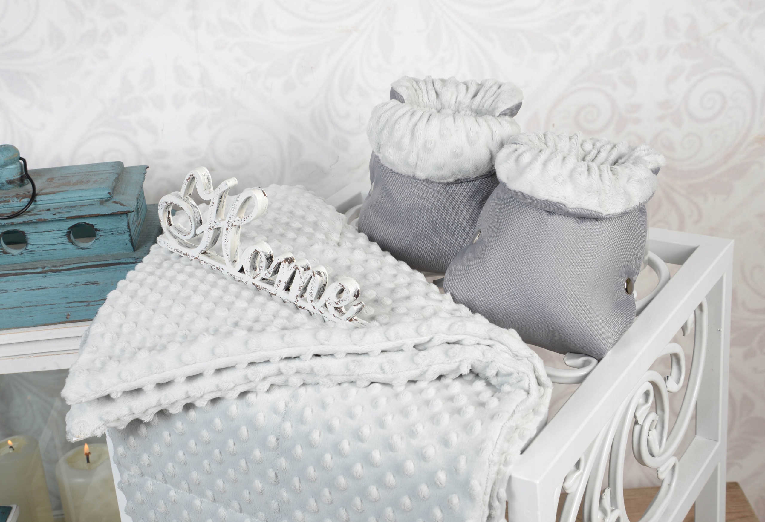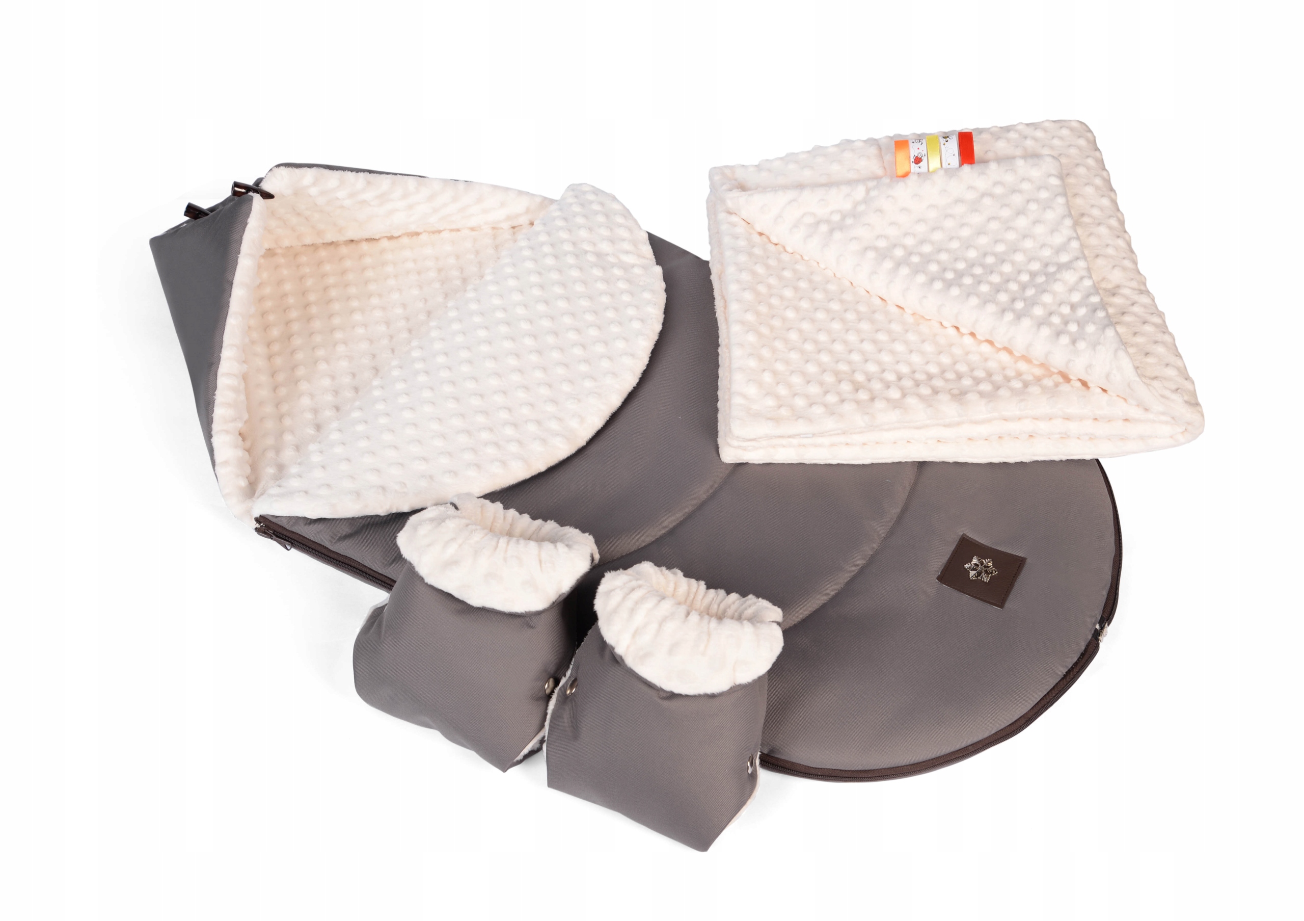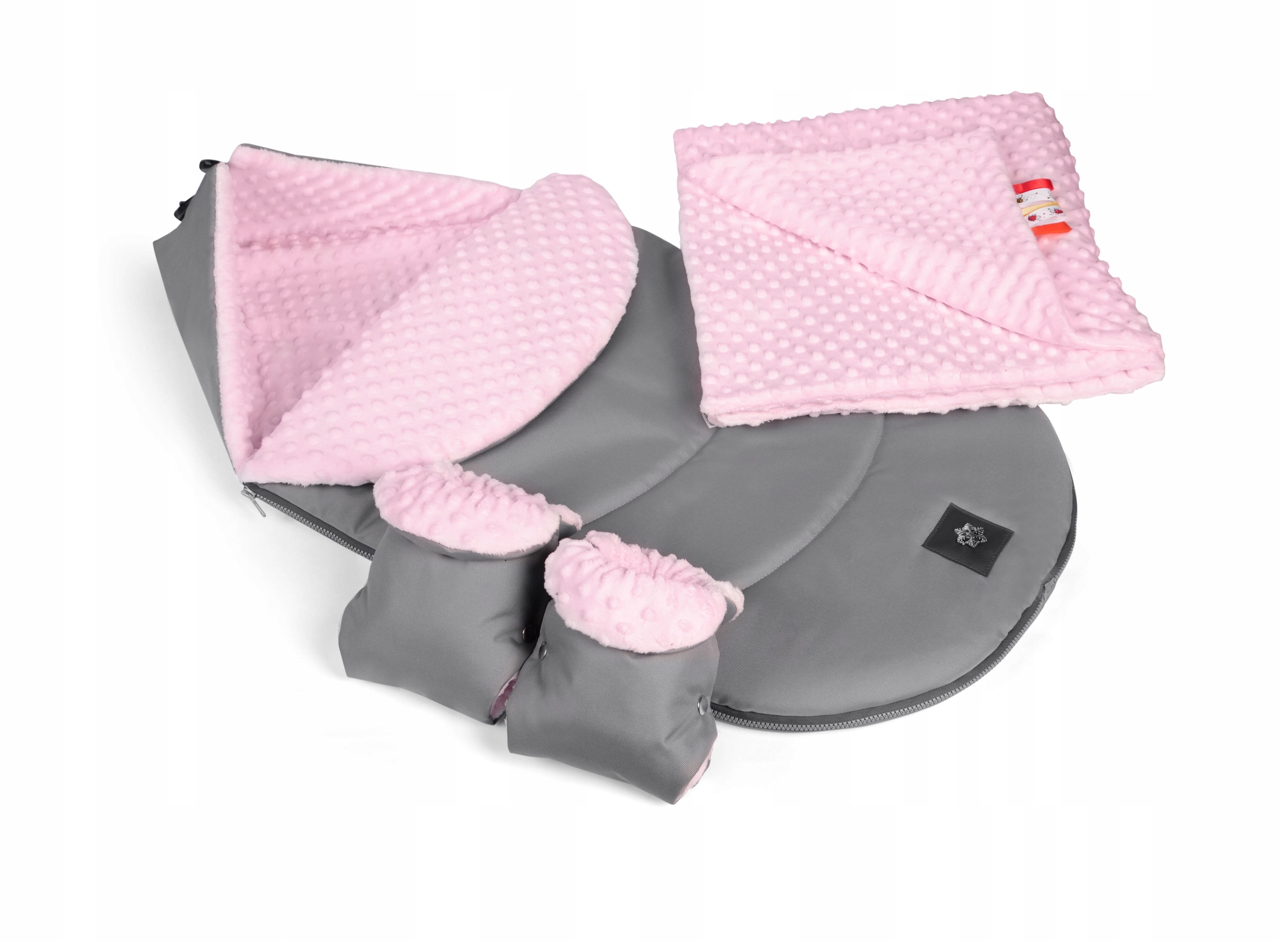 ŚPIWOREK DO WÓZKA + RĘKAWICZKI + KOCYK minky XL (80 x 80 cm)