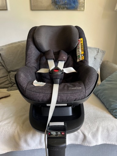 Сидіння Maxi Cosi 2way Pearl зі спеціальною базою 2wayFix. Сидіння очищене і готове до нового власника. Зазвичай є сліди користування (потертий пластик, відклеюється наклейка з інформацією про стандарти - знімається без шкоди), всі елементи працюють - діоди і звуковий сигнал в основі, нахил сидіння (корисно, коли дитина несе ), протягування ременів, можливість пристебнути дитину обличчям вперед і обличчям від напрямку руху. Я також почав фотографувати частину з пінополістиролу. Сидіння безаварійне.