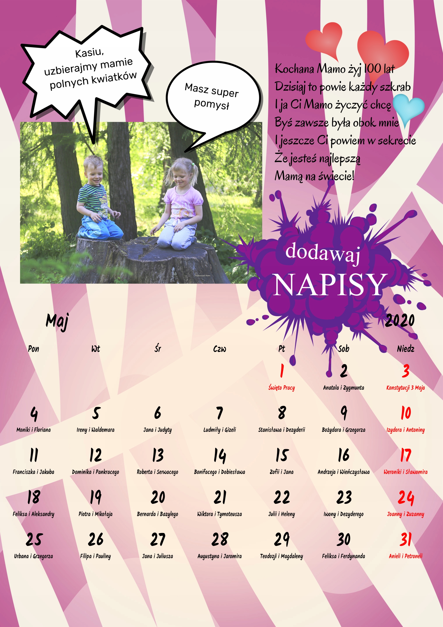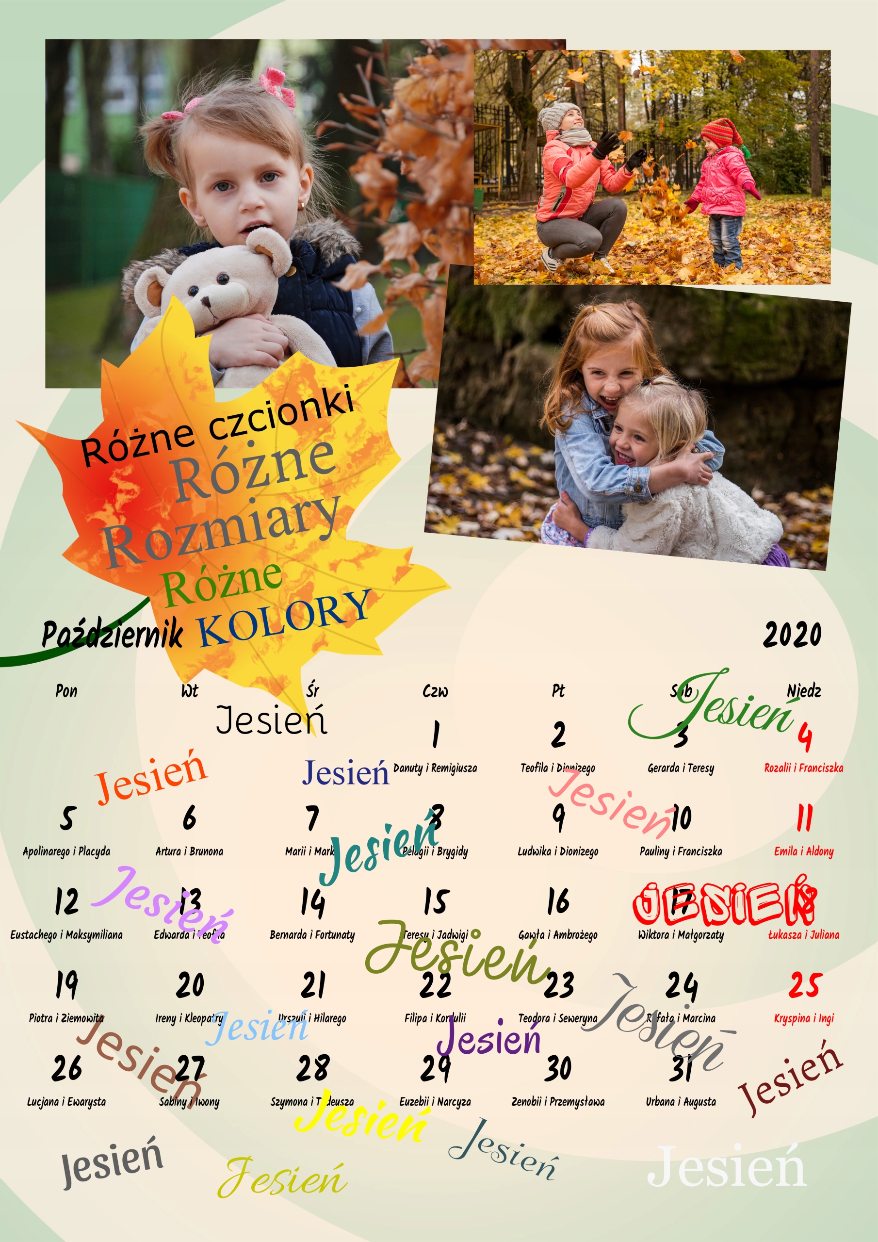 - do wyboru tematyczne ciekawe wzory kalendarzy na rożne okazje