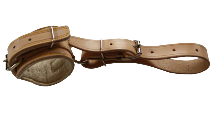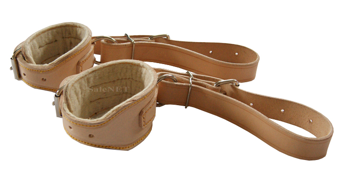 Prezentowany pas służy do unieruchomienia tylko jednego nadgarstka lub jednej kostki. Wykonany jest ze skóry a tworzy go regulowany "łącznik" oraz obejma na nadgarstek/kostkę. Obejma na nadgarstek/kostkę posiada metalowe klamry, dzięki którym jej szerokość można wyregulować zgodnie z obwodem nadgarstka/kostki pacjenta. Ponadto obejma na nadgarstek/kostkę po stronie wewnętrznej została pokryta warstwą filcu, chroniącą przed otarciami. Wspomniany łącznik również posiada metalowe klamry i można go zamocować do krzesła lub ramy łóżka.