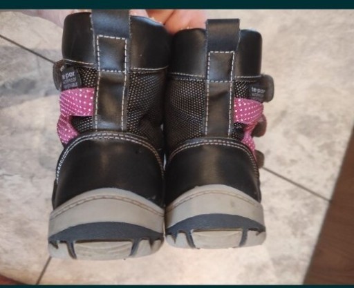 Взуття в дуже хорошому стані, користувалася мало. Туфлі куплені в грудні 2021 року. надано Allegro. Ще на гарантії. Верхня липучка на одному з черевиків зламалася, але це не впливає на використання. Думаю можна самому поклеїти або відправити туфлі на вимогу.