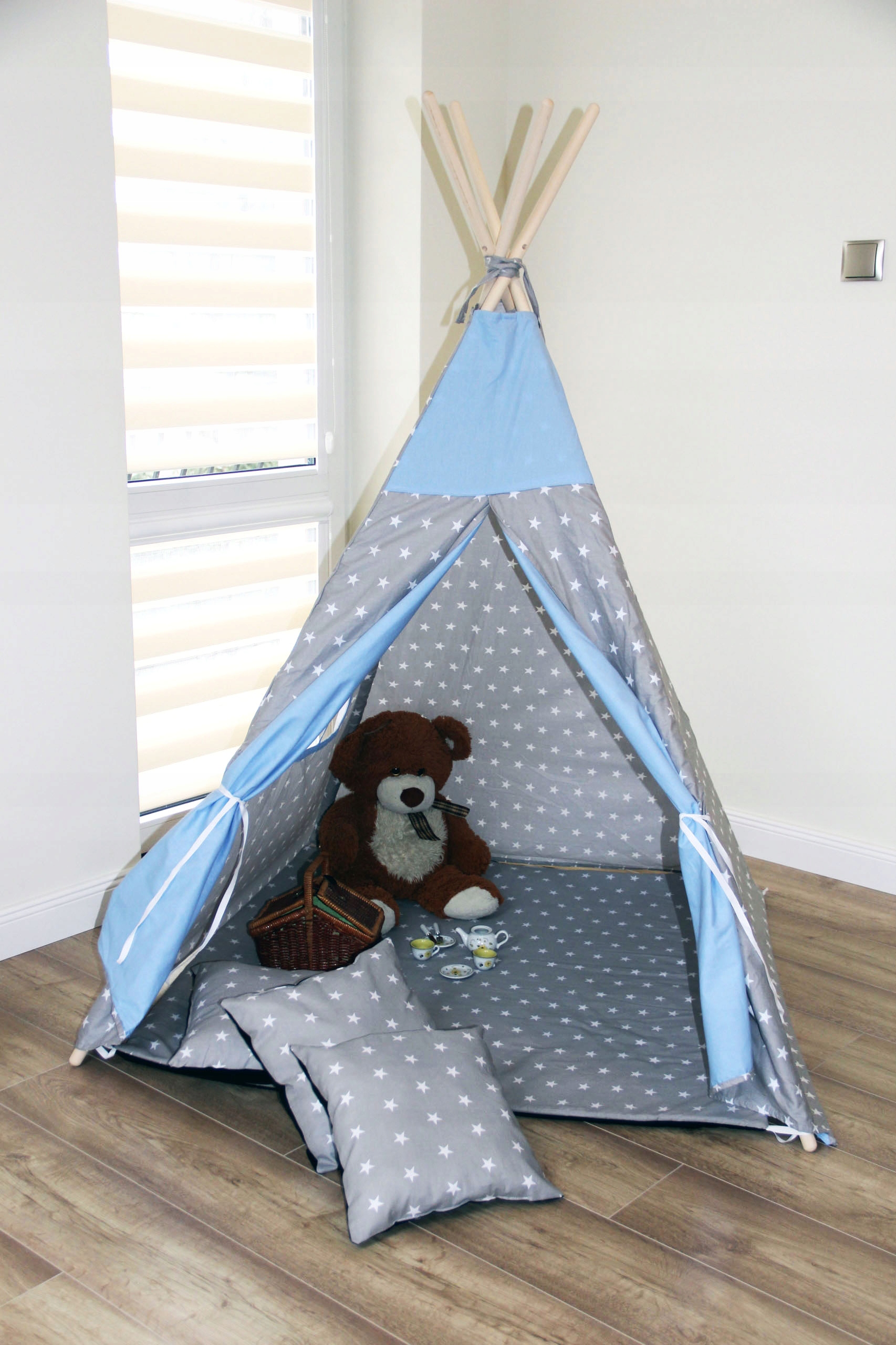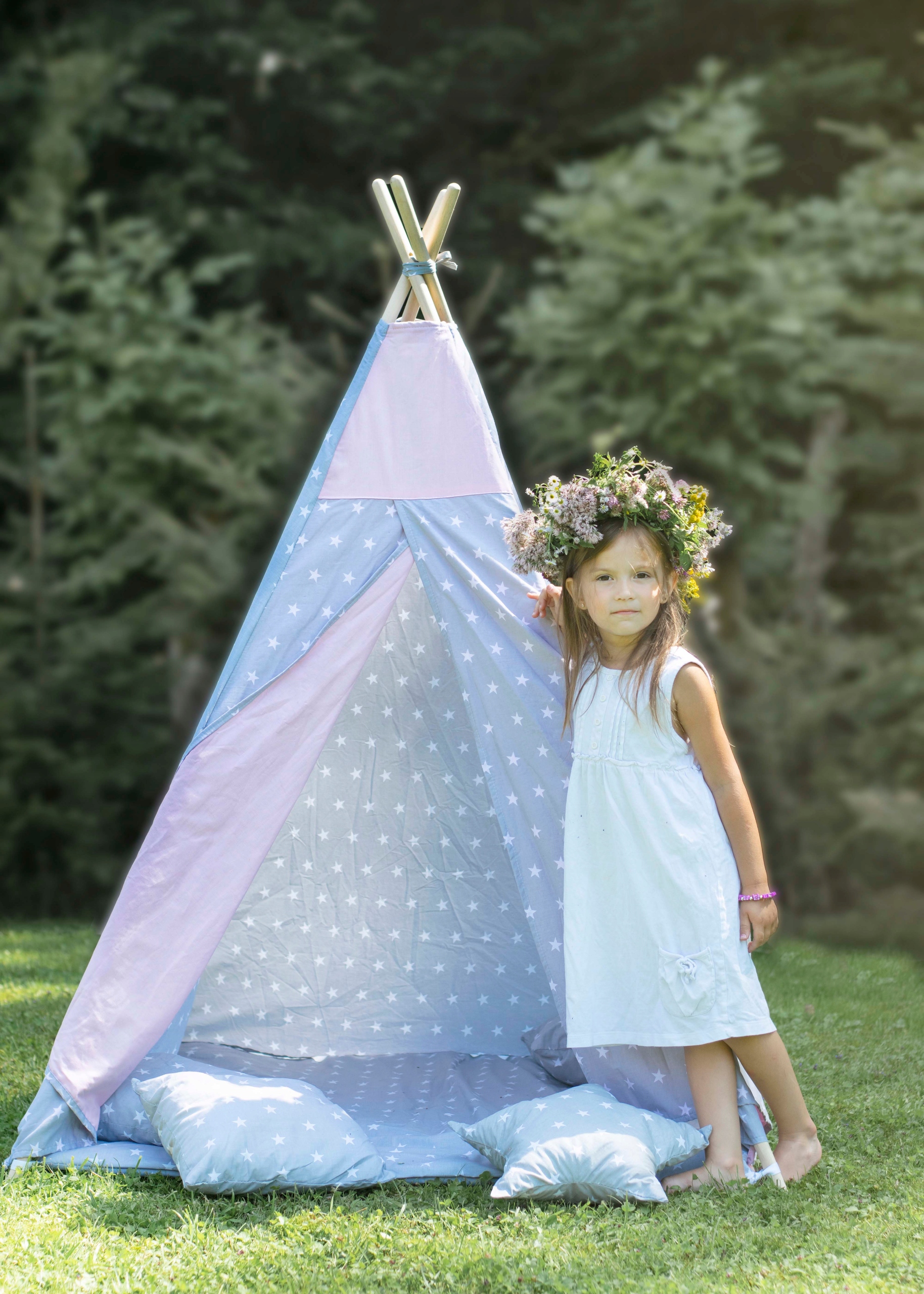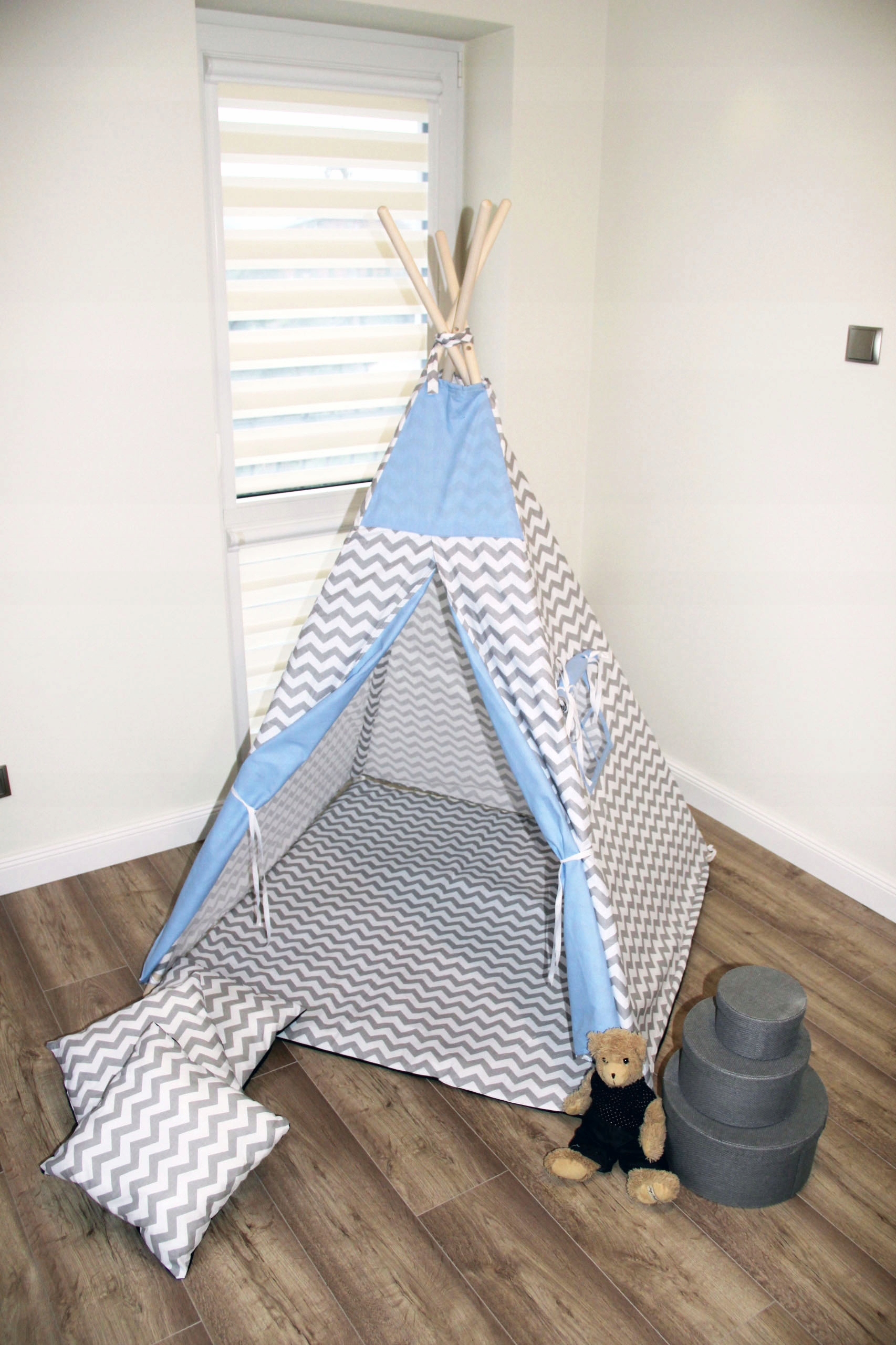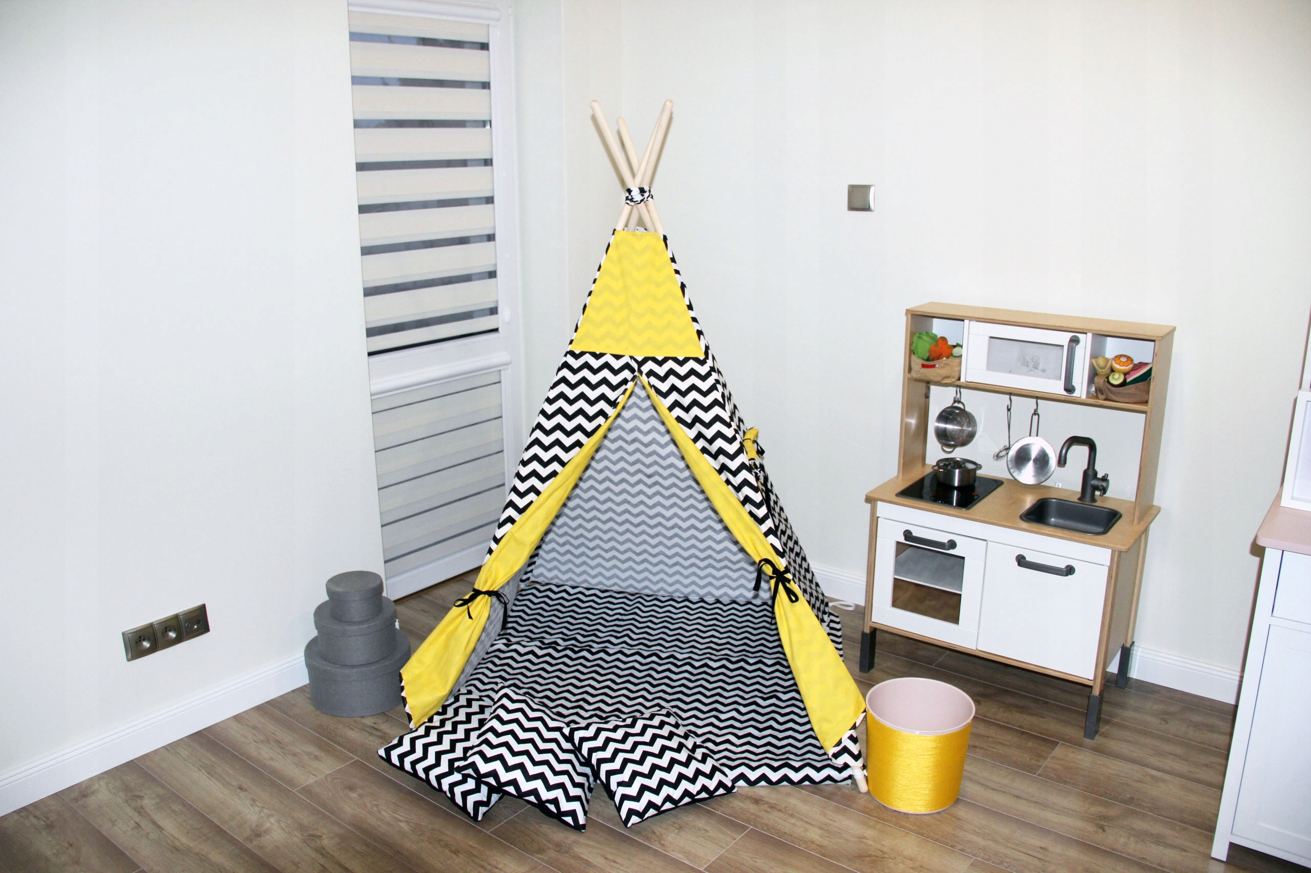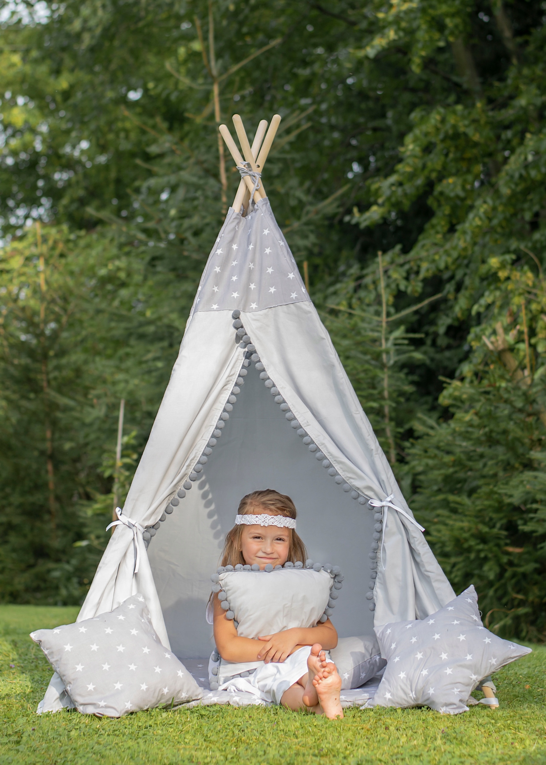 Ręcznie szyty, bawełniany namiot TIPI pobudzi wyobraźnię twojego dziecka i zainspiruje go do aktywnej zabawy w Indianina czy nocowanie w namiocie bez wychodzenia z domu. Dzięki produkcji z naturalnych materiałów jest w pełni bezpieczny i nadaje się do użytkowania przez nawet kilkumiesięczne maluchy.