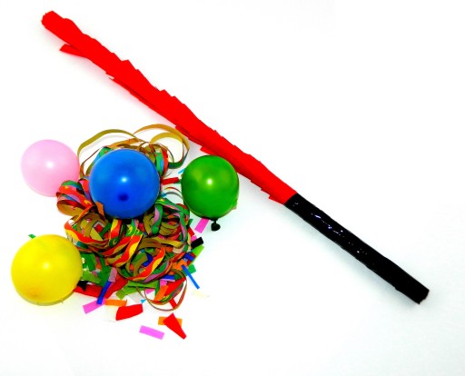 Піньята має спеціальну ручку для підвішування та спеціальний отвір, через який її можна наповнити солодощами та маленькими подарунками.