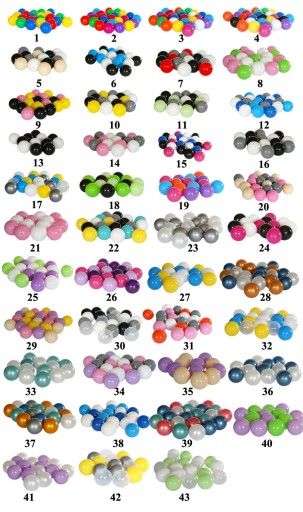 Кулі мають багато застосувань, оскільки вони використовуються як доповнення до сухих басейнів, але вони також служать прикрасою, їх використовують для виготовлення прикрас, для розваги тварин тощо. Використання кульок обмежується тільки вашою фантазією. З'являються запропоновані м'ячіу 35 інтенсивних блискучих кольорах: блакитний, небесно-блакитний, зелений, помаранчевий, червоний, фіолетовий, жовтий, рожевий, білий, сірий, світло-сірий, бежевий, чорний, бірюзовий, аквамарин, пудрово-рожевий, сріблястий, безбарвний, перламутровий, металева бірюза , рожевий металік, синій металік, чорничний, золотистий, лаймовий, вересовий, блакитний, + НОВИНКА - м'ята, кориця, персик, горох, світло-блакитний, лавандовий, темно-золотий