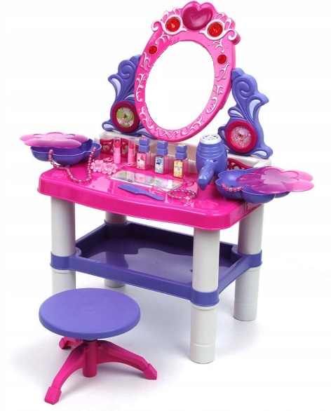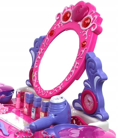 Toaletka dla dziewczynki to wyjątkowe "studio urody". Toaletka posiada grające, obrotowe lustro - wystarczy nacisnąć guzik a zacznie grać i migać światełkami.