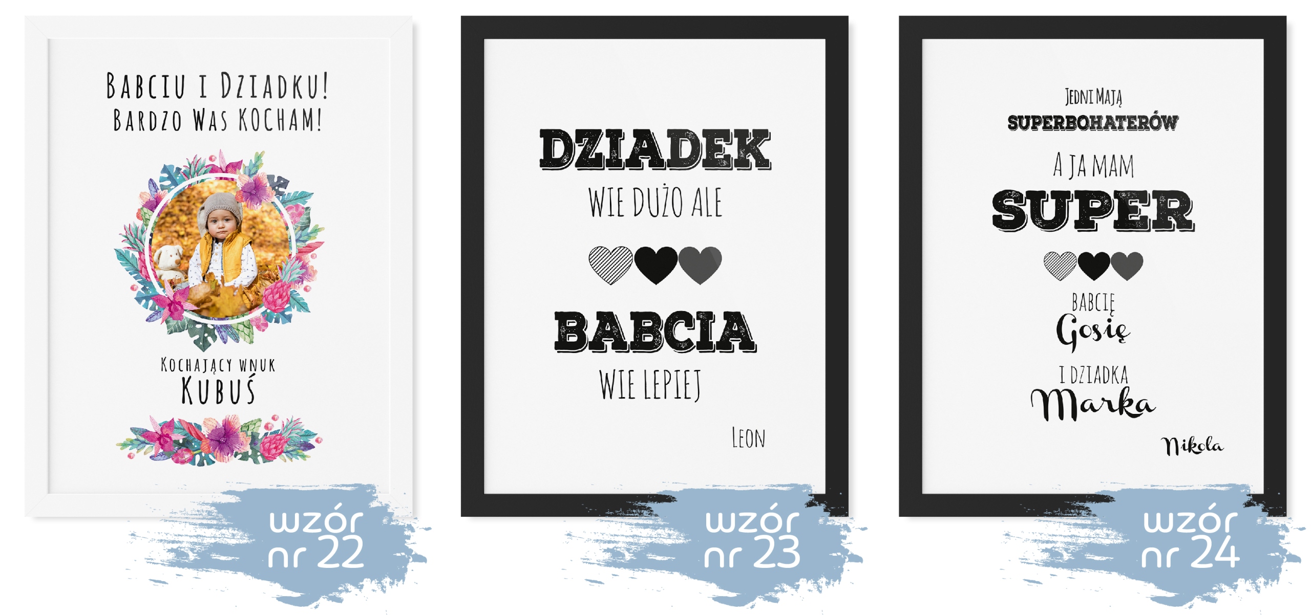 Plakat ten powstał z myślą o naszych kochanych Babciach i Dziadkach. Dla nich to wspaniała pamiątka, jak również ozdoba domu, która będzie im o Tobie przypominać.