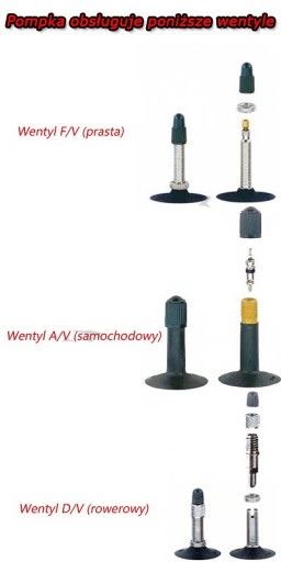 - Підтримує клапани Schrader/Presta/Dunlop AV/FV/DV