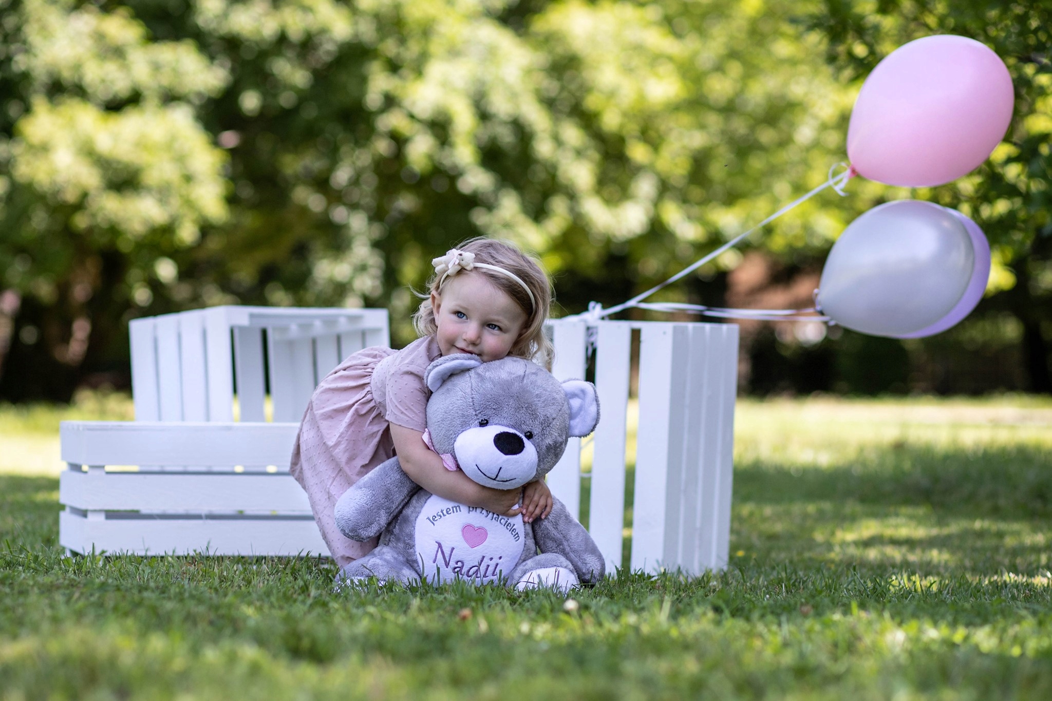 - napis do umieszczenia na misiu wraz z imieniem dziecka np. Pierwsze urodziny Lenki, Drugie urodziny Filipka itp.