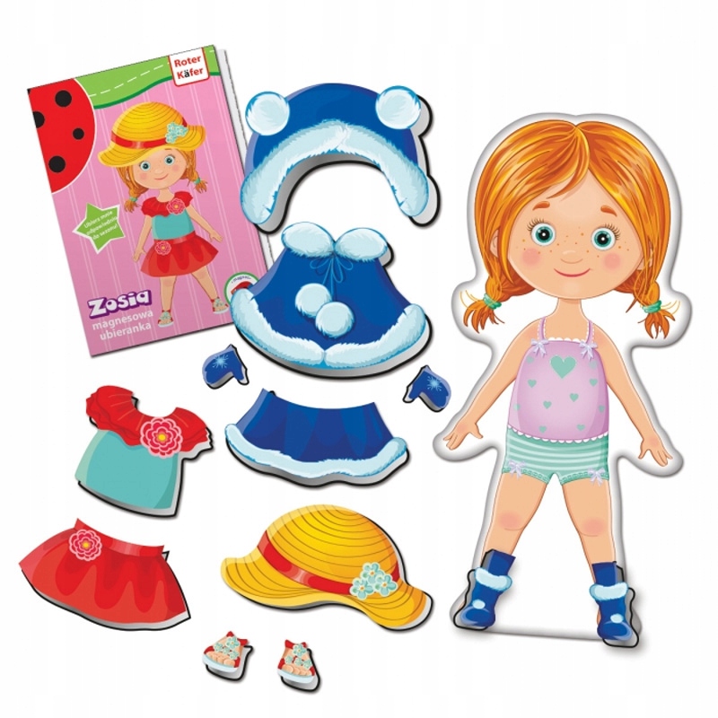 Ta magnesowa ubieranka ma inspirujący wpływ na rozwój wyobraźni dziecka i zaprasza do wyruszenia wraz z Zosią na spacer. Zadaniem dziecka jest odpowiednie dobranie ubranek do aktualnej pory roku. Przez zabawę dziecko nauczy się jak ubierać się odpowiednio do pogody. Gra - ubieranka pomoże dziecku zrozumieć, co ubiera się latem, jesienią, zimą i wiosną. W książeczce - instrukcji znajdziecie wskazówkę, jak łączyć części garderoby i której porze roku odpowiadają. Ale to jeszcze nie wszystko! Na stronach książeczki znajdują się także tematyczne zadania dla rozwoju uwagi, pamięci i logicznego myślenia.