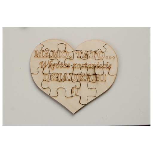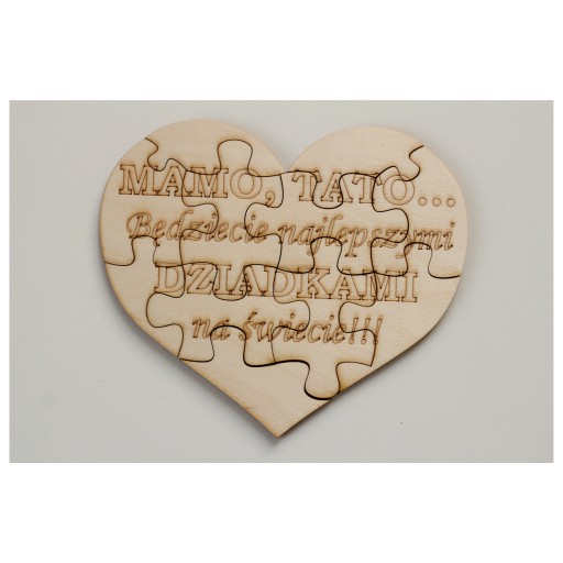 Головоломкавирізані лазером з фанери товщиною 3 мм. Після подачівони утворюють серцез радісною інформацією для бабусь і дідусів :)