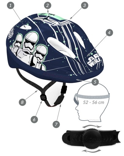 - Плавне регулювання окружності голови в діапазоні від 52 до 56 см.