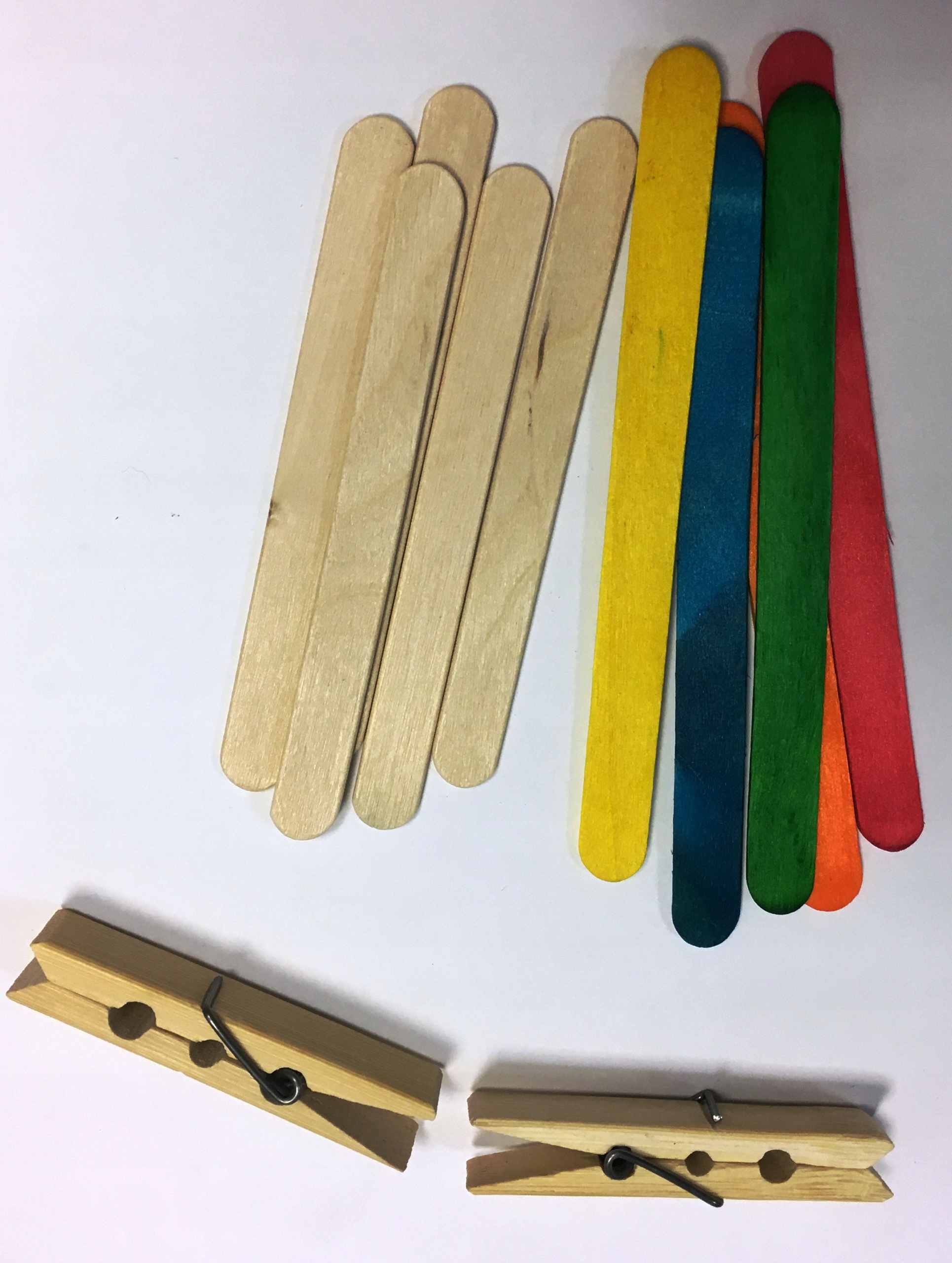 Przedmiotem aukcji jest zestaw umożliwiający stworzenie zakładek do książek z klipsów, spinaczy i patyczków drewnianych