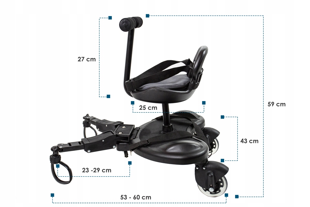 Dostawka do wózka Buggy Board to dostawka 2 w 1. Może być dostawką siedzącą, jak i stojącą. Spacer z dwójką dzieci będzie dla Was przyjemnością. Zmęczony Maluszek w każdej chwili będzie mógł odpocząć i zregenerować swoje siły. Dostawka zapewni komfort i bezpieczeństwo Twojemu starszemu dziecku.