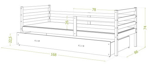 - Містка шухлядаВисувна на колесах. Можна використовувати як контейнер для постільної білизни або іграшок (шухляда є окремим елементом ліжка).