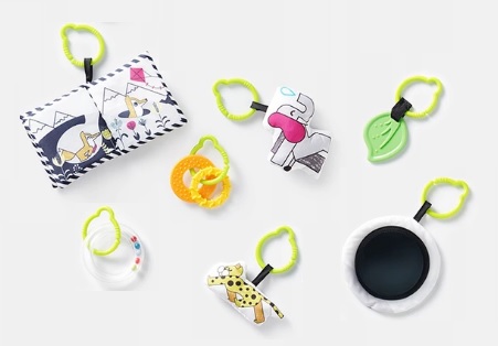 Kontrastowe kolory i czarno-białe detale pobudzają zmysły dziecka.