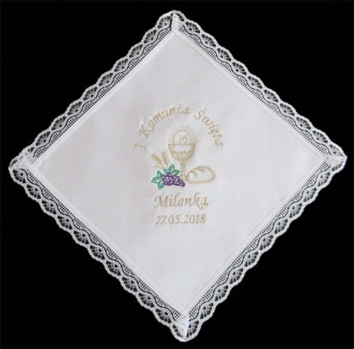 Унікальна хустка з Вашою індивідуальною вишивкою (ім'я дитини, дата Першого Причастя, графіка)