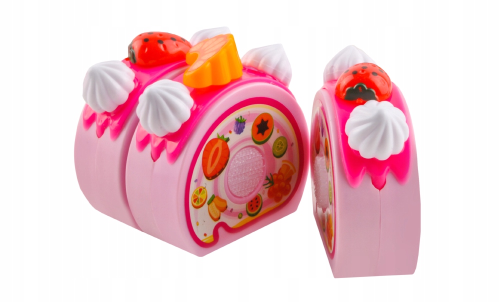 - KREATYWNA ZABAWA – przepiękny, różowy tort urodzinowy można udekorować według własnej wizji i pomysłu. W zestawie znajduje się mnóstwo dodatków takich jak owoce, bezy, świeczki, które można ułożyć na torcie według własnego pomysłu. Daje to nieograniczone możliwości kreatywnej zabawy godzinami.
