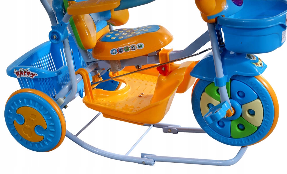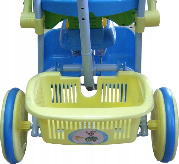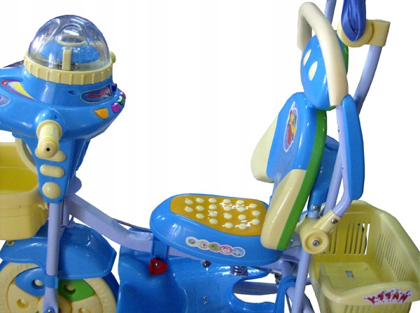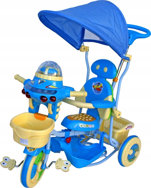 Wielofunkcyjny rowerek trójkołowy z daszkiem.