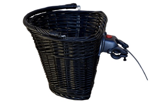 Плетений кошик для велосипеда CLICK кольору WENGE - кошик ідеально підходить для велосипедних прогулянок і шопінгу. Ретельне виготовлення та міцна конструкція забезпечують безпечне та зручне перенесення покупок. Кошик розміщується на передній частині керма за допомогою клацання. Кріплення кошика за допомогою «CLICK» забезпечує швидкий монтаж і демонтаж кошика без використання додаткових інструментів.