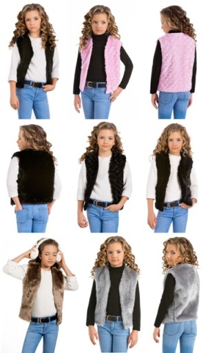 Пропонуємо вашій увазі модні дитячі жилети з капюшоном, виготовлені зі штучного хутра норки з підкладкою всередині. Жилети можна носити поверх блузи, светра або жакета.