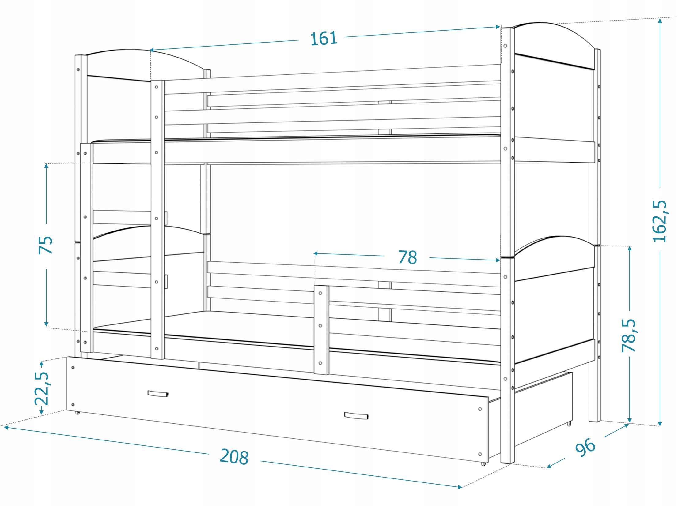Двухъярусная кровать MATEUSZ 3 белый белое 200x90