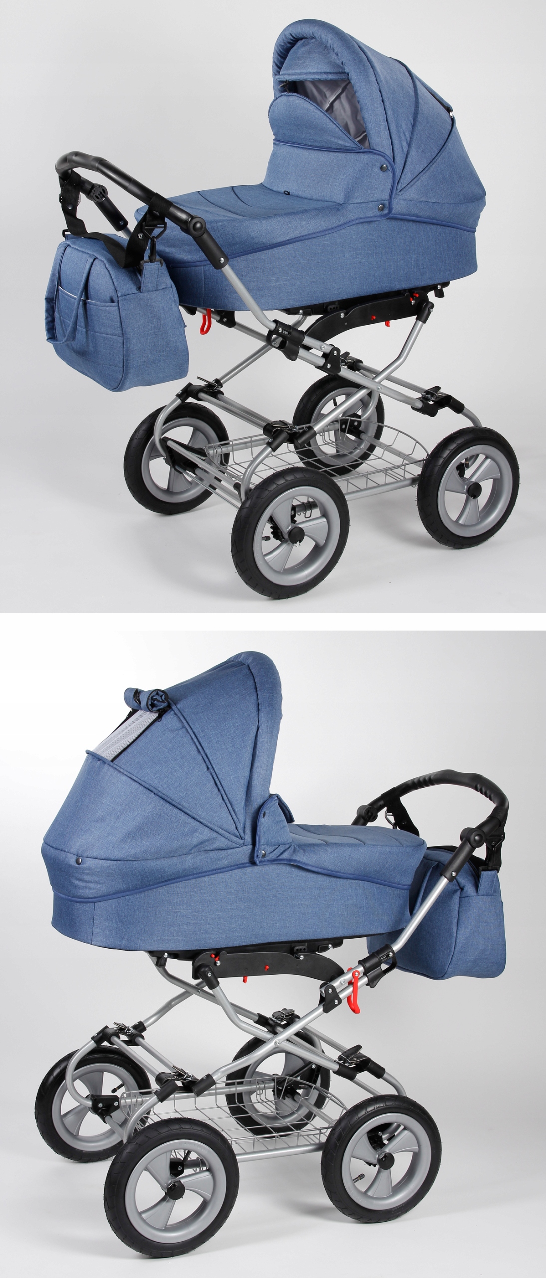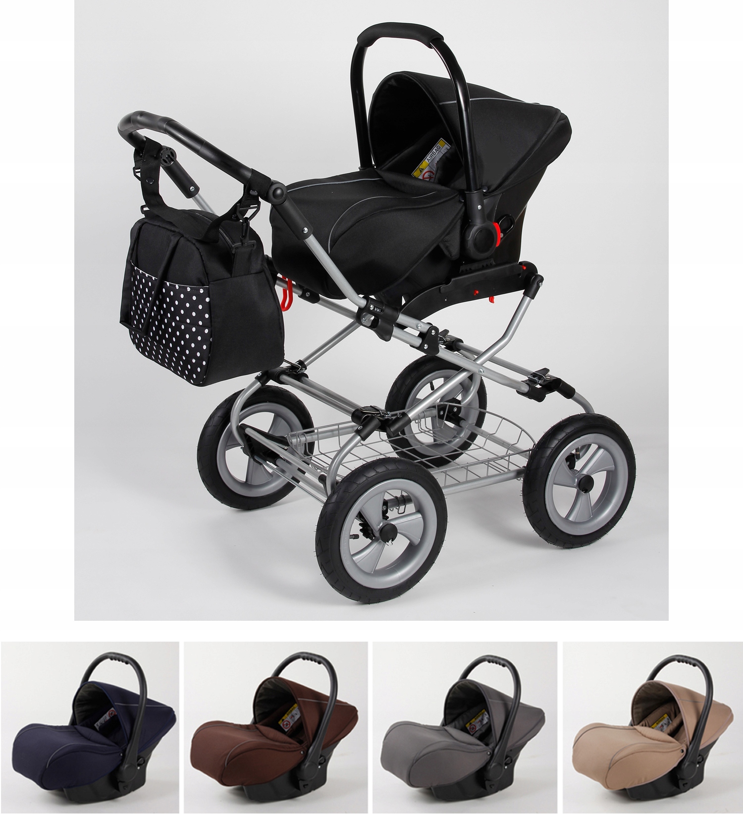 - Duży kosz pod zawieszenie wózka.