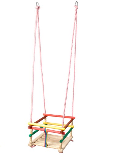 Гойдалки виготовлені з натуральної деревини бука, покриті екологічним лаком. Міцний, добротний, стійкий, має захист для найменших, ремінь, який захищає дитину від вислизання. Гойдалки оснащені м'якою подушкою зі 100% бавовни, яку можна прати і прасувати при низьких температурах. Крім того, він оснащений двома мотузками та металевими кріпленнями, готовими до підвішування.