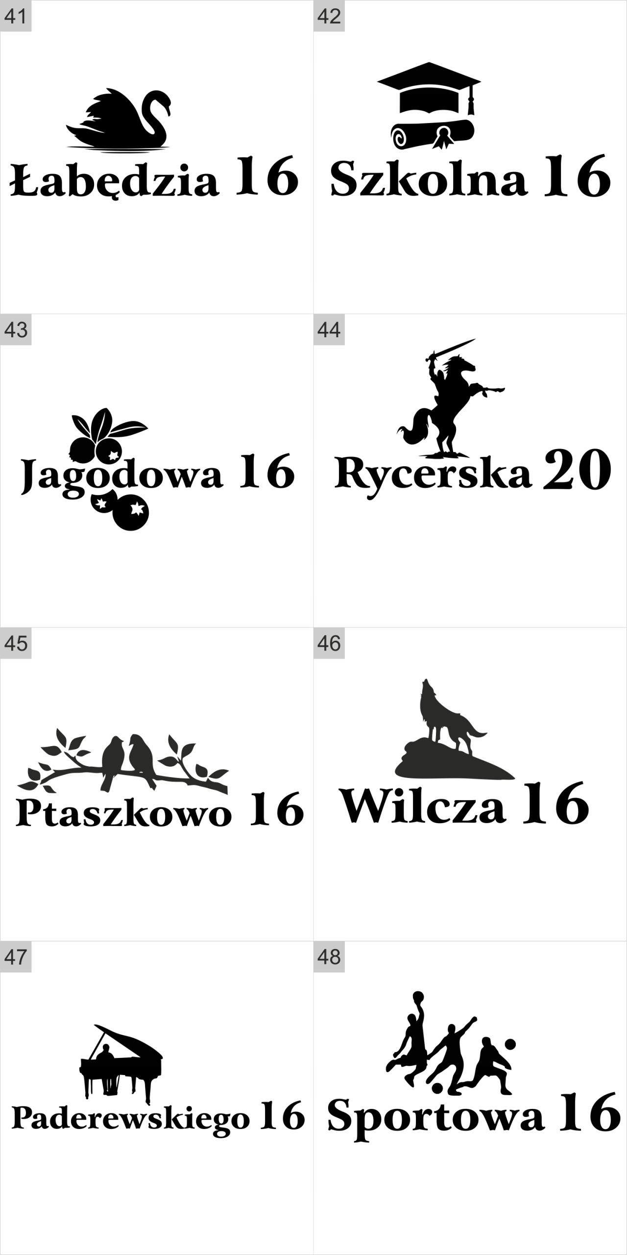 W przypadku gdyby wszystkie litery w nazwie ulicy miały być pisane dużymi literami (o jednej wysokości) prosimy o taką informację. Domyślną opcją jest wysokość 13cm tylko dla pierwszej (dużej) litery natomiast wysokość pozostałych liter wychodzi z proporcji.