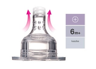 Виготовлений з тонкого шару силікону. Вона розширюється і звужується в ритмі смоктання малюка, мобілізуючи ротову мускулатуру для активної, напруженої роботи. Малюк повинен напружуватися, беручи їжу з соски.