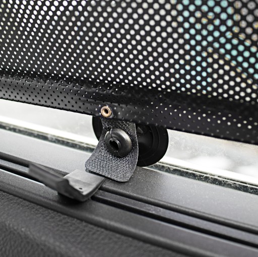 - Автомобільна штора виготовлена з міцної сітки ПВХ з дрібними вічками.