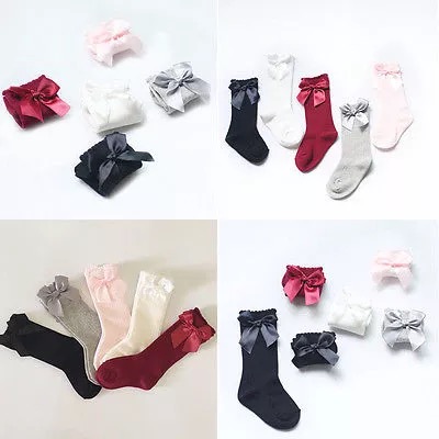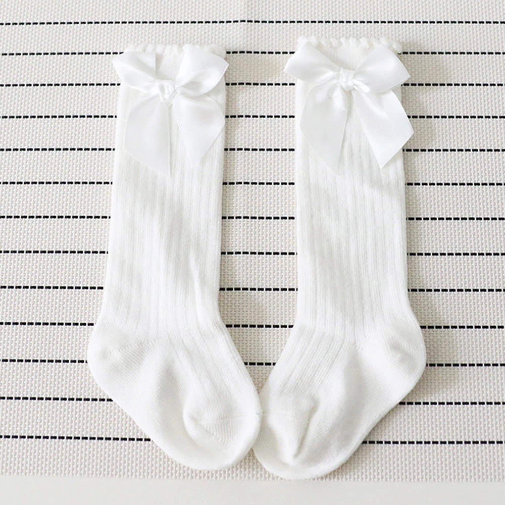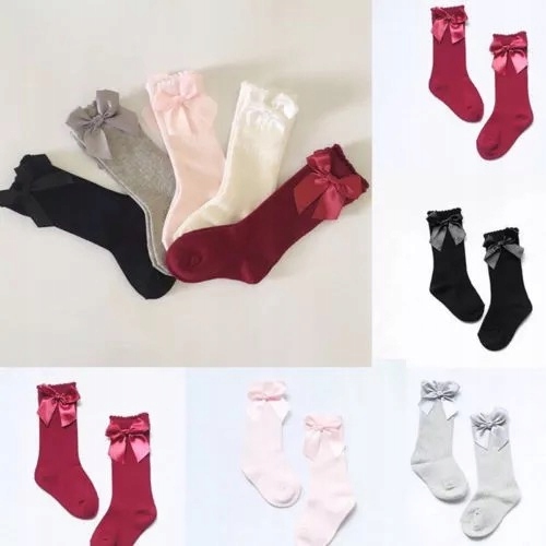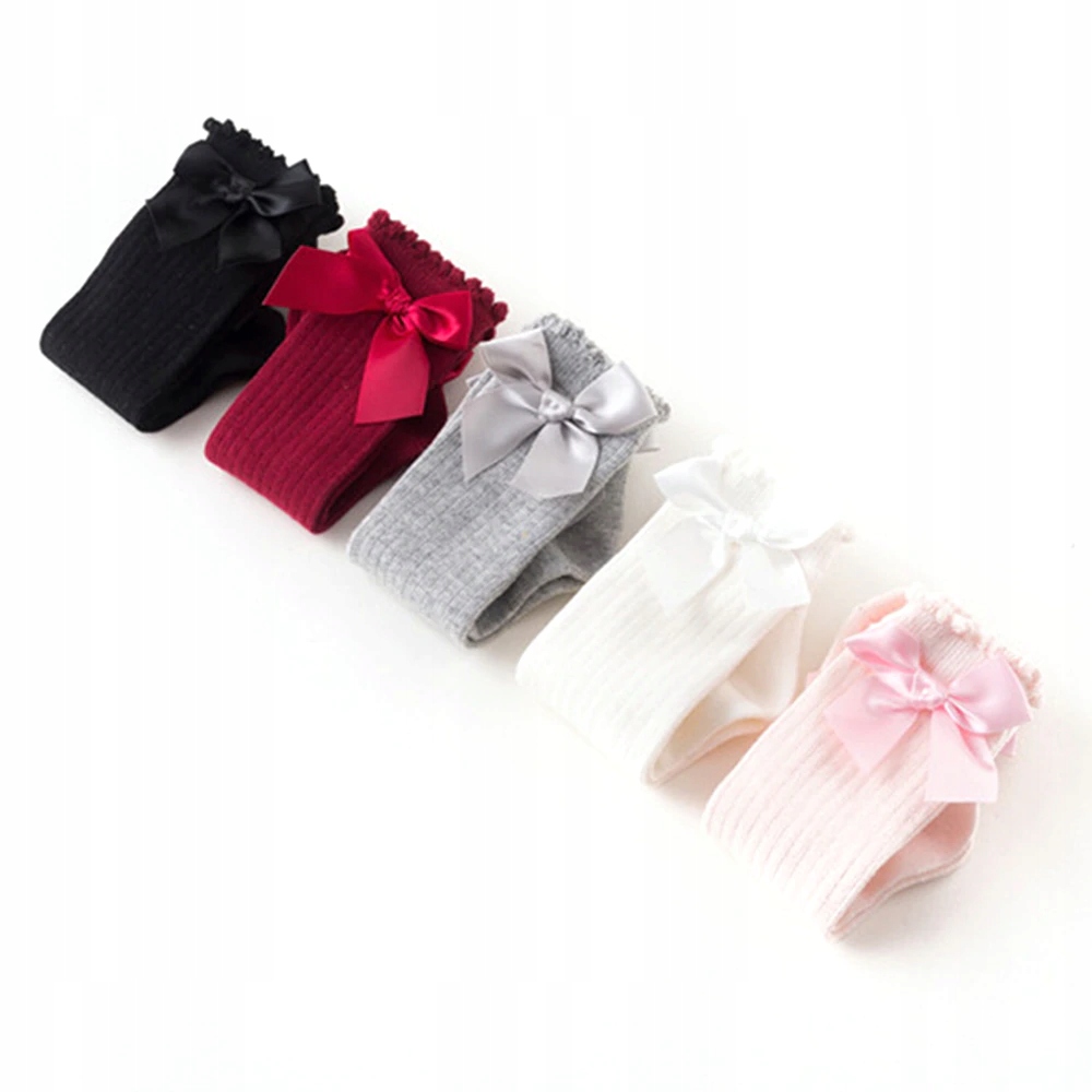 Aukcja dotyczy widocznych na zdjęciu białych podkolanówek ozdobionych kokardką dla dziewczynki w wieku od ok. 9 - 24 miesięca zycia.
