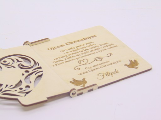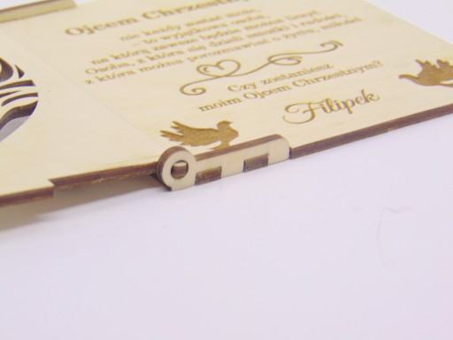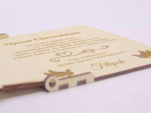 один спалений запит у деревині. Ідеальний сувенір для хрещеного батька. Запит виглядає чудово.