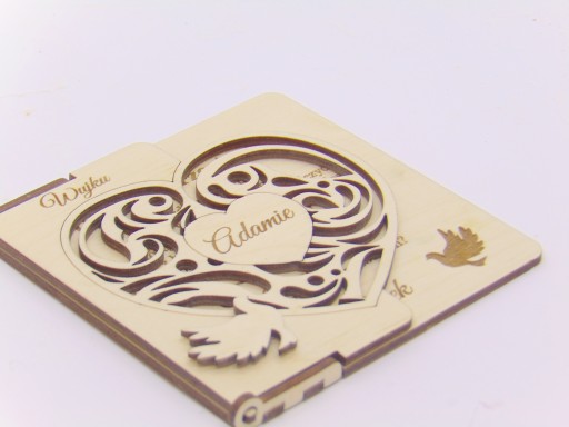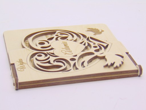 Чистка запрошення, послуга - видалення підгорілих місць, які виникли в результаті лазерного різання та гравіювання. Залишилися тільки коричневі краї в результаті лазерного різання.