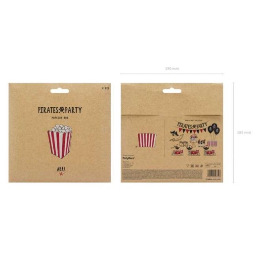 Декоративні коробки для попкорну ідеально підходять до піратської тематики. У наборі 6 коробок з червоною та білою смужками. Чудове доповнення до оформлення тематичних вечірок, але не тільки!