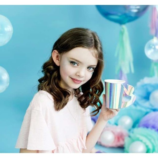 Чудовий набір голографічних чашок з ручками у формі хвоста РУСАЛКИ. У наборі 6 опалесцентних чашок, тобто дуже мерехтливого кольору, що виглядає дуже оригінально. Ємність чашок приблизно 220 мл.