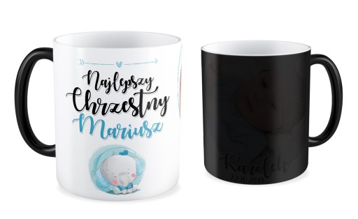 Після наливання гарячої рідини на кухоль на кухлі поступово з'являється вибране зображення, яке в звичайному стані покривається чорним кольором. Після того, як залита рідина охолоне, чашка знову чорніє. Графіка покрита приблизно на 90%, що є одним з найкращих параметрів, доступних на ринку.