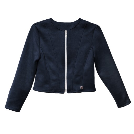Виготовлена з еластичної м'якої замшевої тканини. Застібається на срібну блискавку. Прикраса вшита збоку. Жакет гарно сидить по фігурі, тому що має приталений модний крій. Підходить до будь-якої сукні, спідниці, штанів.