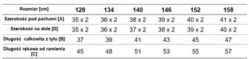 Dostępny w rozmiarach 128 cm - 158 cm.