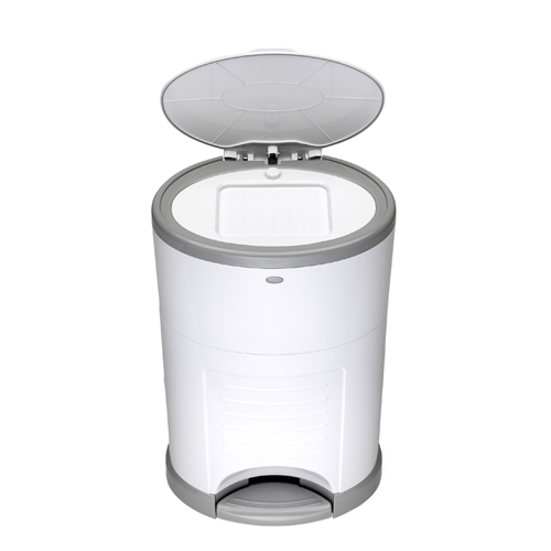 Коли контейнер більше не потрібен для підгузників, ви можете зняти систему ущільнення та використовувати контейнер як естетичне відро для сміття в офісі чи на кухні, тоді можна використовувати звичайні пакети для сміття.
