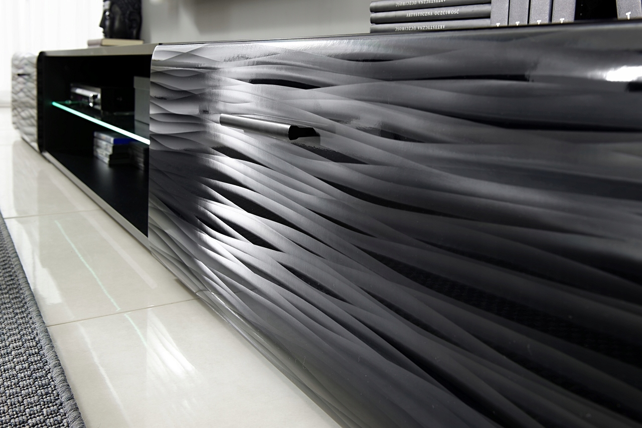 - Meblościanka BLACK 4 to obecnie niekwestionowany hit sprzedaży. Podstawą oryginalnego wyglądu mebli jest nowoczesny dekor 3D, który jest idealnym rozwiązaniem dla wszystkich osób preferujących nowoczesny, a zarazem odważny design. Meblościanka BLACK 4 doskonale wpasuje się do awangardowego salonu, podkreślając niepowtarzalny i unikatowy styl pomieszczenia. W ofercie dostępna jest również komoda i stolik.