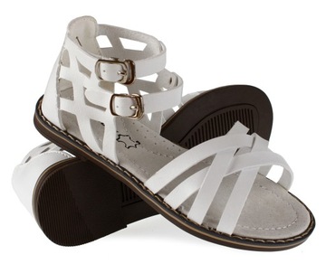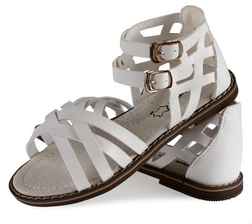 SANDAŁY białe wkład SKÓRA profilowane RZYMIANKI 28